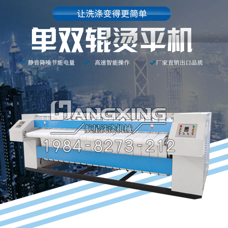 用途:工業燙平機是洗滌機械的一種,屬于洗衣房熨整設備,發明于18世紀,到了19世紀末期,蒸汽引擎被引入到了洗滌機械的設計中,于是用于工業的蒸汽燙平機出現了。20世紀40年代,電力燙平機被發明。此時,電力的應用、設計的改進使得燙平機的效率有了很大的提高,從而,在工業應用上,燙平機徹底取代了熨斗和熨板而成為主流的熨燙工具。